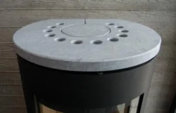 Na horní část krbových kamen je možné pořídit kamennou desku (mastek nebo pískovec), fotografie níže v galerii. Tyto světlé kameny tvoří krásný kontrast s černým pláštěm kamen.