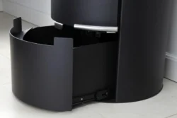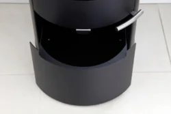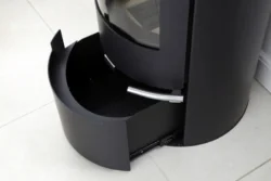 Spodní část kamen (pod spalovací komorou) tvoří velice praktický vysouvací zásobník na kolejničkách, který se používá na uskladnění několika polen, třísek, podpalovače, rukavice apod… Prostě všech věcí, které u kamen musí být, ale není na ně zrovna hezký pohled. Díky tomuto zásobníku je máte vždy po ruce a přitom Vám “nehyzdí” interiér.