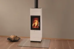 Kamna lze také doplnit otočnou podložkou s hrdlem a díky tomu můžete i takto těžká kamna i za provozu pohodlně otáčet v interiéru až o 360°.