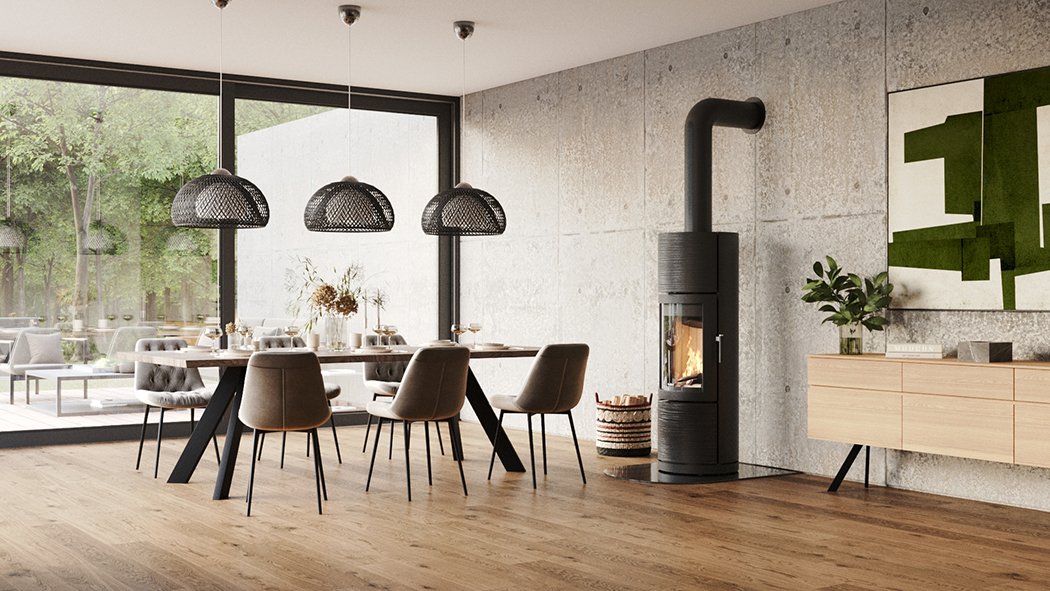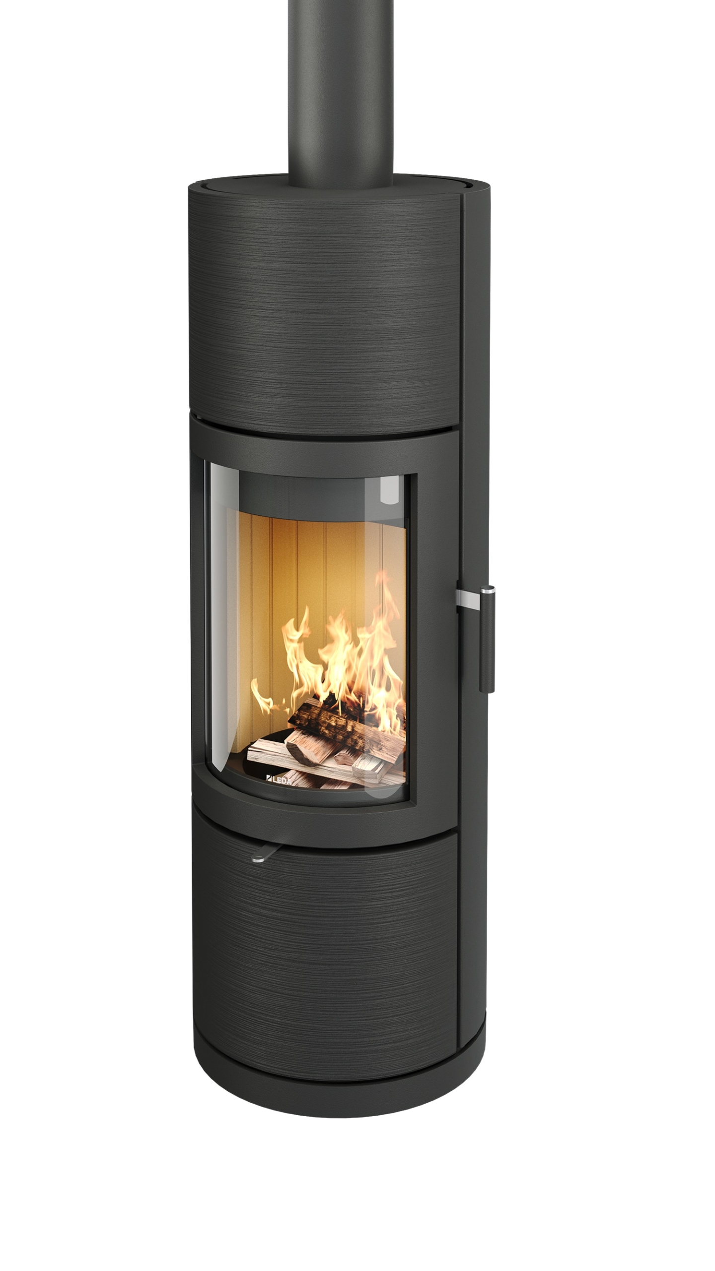 Elegantní, válcové litinové tělo vybavené decentními ovládacími prvky a velkým prosklením pro výhled na plameny. Kamna GREENA kombinují minimalistický design s funkční dokonalostí. Tato celolitinová kamna jsou k dispozici ve dvou různých povrchových úpravách – hladká nebo vroubkovaná s reliéfem připomínajícím kůru stromu. V závislosti na požadavcích na vytápění obytného prostoru lze do horního segmentu kamen nad topeništěm integrovat až šest litinových akumulačních vložek o hmotnosti 15 kilogramů (celkem 90kg).