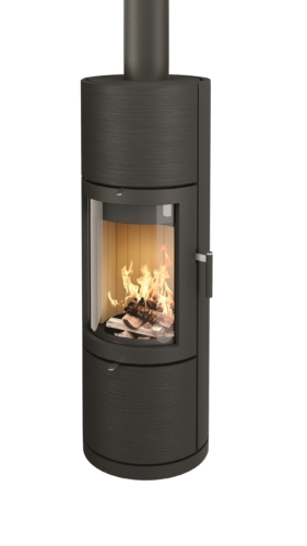 Elegantní, válcové litinové tělo vybavené decentními ovládacími prvky a velkým prosklením pro výhled na plameny. Kamna GREENA kombinují minimalistický design s funkční dokonalostí. Tato celolitinová kamna jsou k dispozici ve dvou různých povrchových úpravách – hladká nebo vroubkovaná s reliéfem připomínajícím kůru stromu. V horní části je umístěný teplovodní výměník, který je snadno přístupný k čištění.