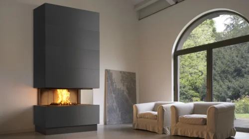 Exkluzivní třístranně prosklený krb s plně výsuvným panoramatickým sklem nahoru a dolů do prostoru spodní základny krbu. Pohyb skla je ovládán motorem po stisknutí tlačítka na soklu krbu. Sklo je rozdělené na dvě části a lze ovládat každé zvlášť. Otevírání a zavírání je řízeno senzory. Pro úplné otevření stačí jediné stisknutí tlačítka, pro úplné zavření je nutné tlačítko držet stisknuté.